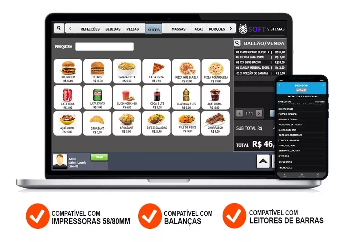 trata-se de um sistema versátil para vários seguimentos tal como,restaurantes,lanchonetes,pizzarias,padarias,cafeterias,bares,cantinas,lojas de açaí,sorveteriasfood truck,rotisserie,açougues,hortifruti,depósitos de bebidasemercados.